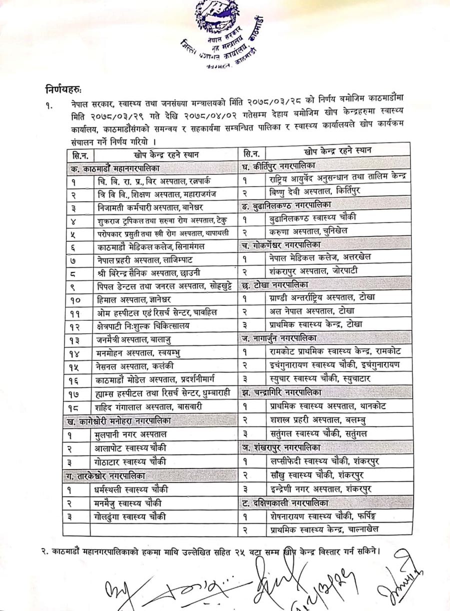 काठमाडौंमा ४४ वटा खोप केन्द्रबाट साउन ६ गतेसम्म जोन्सनको खोप लगाउने निर्णय गरिएको छ ।
