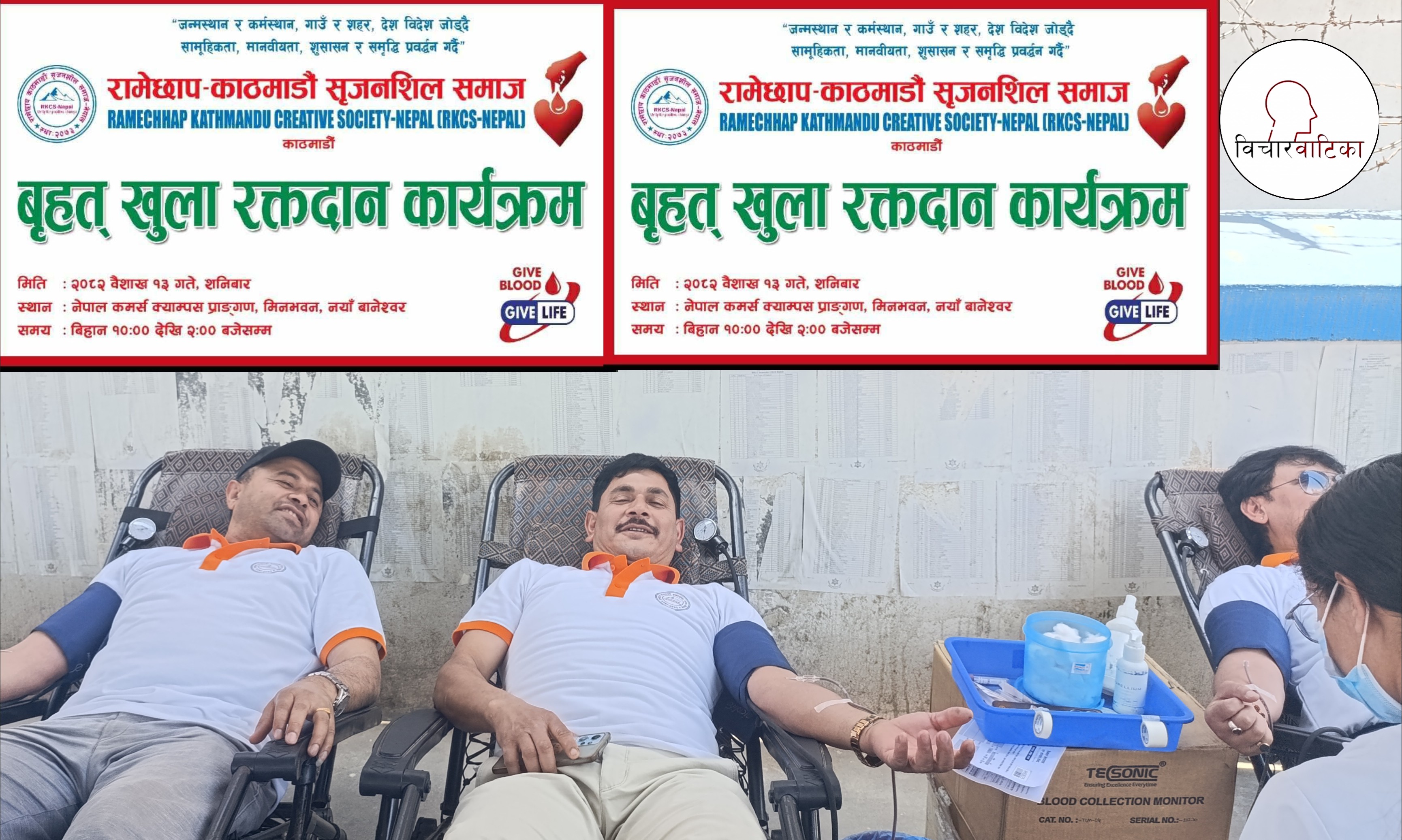 संस्थाका आजीवन सदस्य तथा वल्ड व्यवस्थापनमा सहजीकरण गर्नुहुने समाजसेवी विक्रम श्रेष्ठको संयोजकत्वमा नेपाल कमर्श क्याम्पस मिनभबनमा आयाेजना गरिएकाे बृहत खुल्ला रक्तदान कार्यक्रममा रामेछाप - काठमाडौं सृजनशिल समाजका आजीवन सदस्यहरू ,रामेछाप ,काठमाडौं लगायत विभिन्न ठाउँका ७५ जना रक्तदाताहरूले कार्यक्रममा उपस्थितिभै रगत दान गरेकाे संस्थाकाे आधिकारिक फेसबुक पेज बाट सार्वजनिक गरिएकाे छ।
