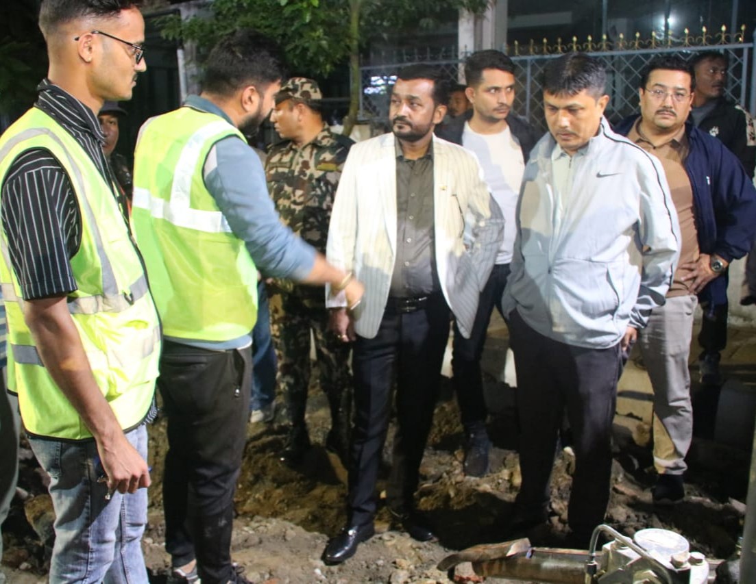 आज राति मन्त्री यादवले प्रधानमन्त्री निवास बालुवाटारदेखि नक्साल, टुडालदेबी, विशालनगर, वङ्शीधर मार्ग र सुवर्ण शम्शेर सडकसम्मका क्षेत्रमा मेलम्ची खानेपानीको पाइपलाइन बिच्छाइएको स्थलहरूमा छड्के अनुगमन गर्नुभएको थियाे ।