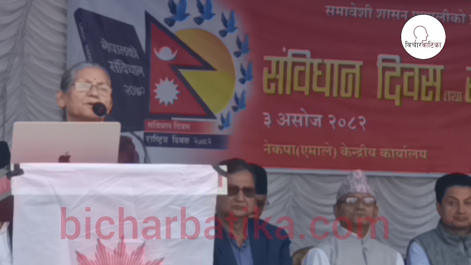 असाेज ३ ललितपुर , नेकपा ( एमाले ) ले गत भदौ २४ गते अराजक समुहले ताेडफाेड तथा आगजनीबाट पूर्ण क्षेति भएकाे पार्टी केन्द्रीय कार्यालय च्यासलमा हजारौंको उपस्थितिमा संविधान दिवस कार्यक्रम मनाएकाे छ ।
