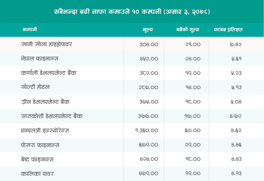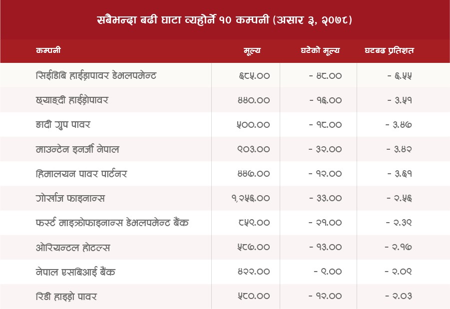 नेपाल धितोपत्र बोर्डले जोखिमयुक्त रहेको भन्दै मंगलबार ५१ कम्पनीको नाम नै तोकेर सूची सार्वजनिक गरेको थियो । बोर्डको यो कदम पछि बुधबार सेयर बजारमा प्रभाव देखिए पनि बिहिबार भने ठूलो प्रभाव देखिएन । नेप्सेमा कारोबार हुने समूहगत सवइन्डेक्सहरु मध्ये ६ वटा बढेका छन् ।