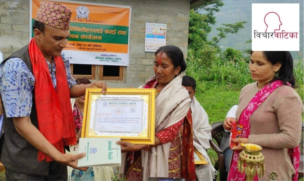 मन्तव्य राख्ने क्रममा गाेठगाउँका वडा अध्यक्ष रेख बहादुर खत्री ,वडा सदस्य शिर कुमारी श्रेष्ठ र सन्जित कार्कीले पनि सराेकार समाजको सम्मानले आफ्नाे जिम्मेवारी अझ थपिएको महसुस भएकाे जानकारी गराउदै सराेकार समाजलाई धन्यवाद व्यक्त गर्नुभयो ।