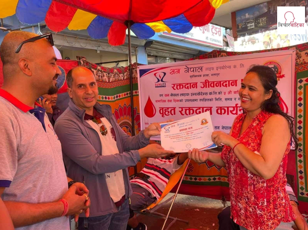 असोज ६ भक्तपुर ,सन नेपाल लाइफ इन्स्योरेन्स कं.लि.को पाँचौ वार्षिकोत्सब तथा सामाजिक सेवा दिवसको उपलक्ष्यमा बृहत् रक्तदान कार्यक्रम समेत सम्पन्न भएको छ।