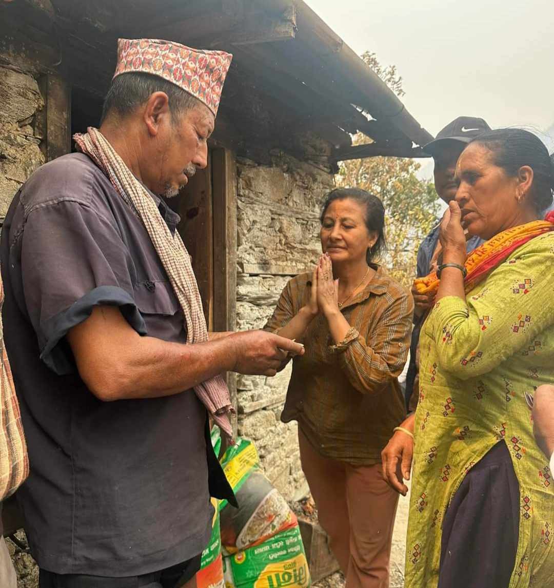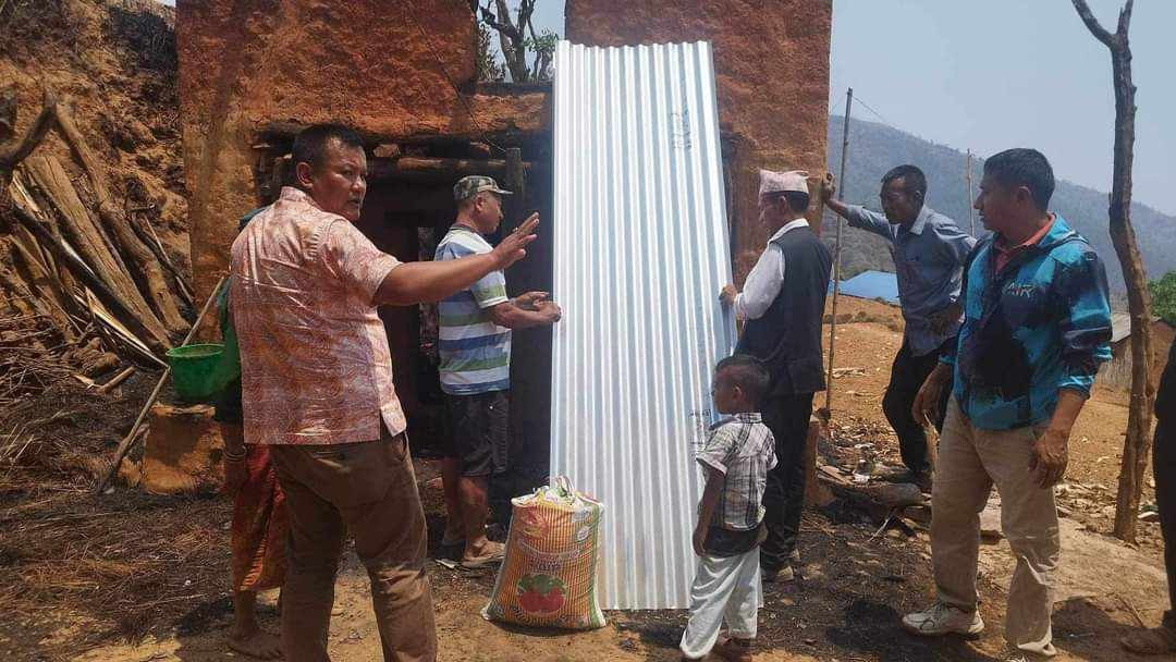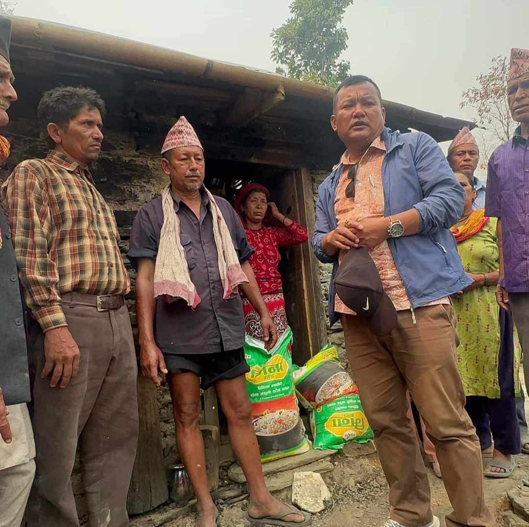 बैशाख ९ गते रामेछाप नगरकाे तीन ठाउँमा आगलागी हुदा साँघुटारकाे ठाडखाेलामा दुई घर परिवारकाे ६ वटा घर ओख्रेनीकाे डान्सिङटारमा दुई घर परिवारकाे चार वटा घर र सुकाजाेरकाे डुडेमा दुई घर परिवारकाे सात वटा घर पूर्ण रूपमा क्षति भएकाे खबर थाहा पाए पछि नेकपा (एमाले)का नेता कार्यकर्ता र रामेछाप -काठमाडौं सम्पर्क मञ्च समेतको आर्थिक सहयाेगमा ८५-९० हजार बराबरकाे राहात सामाग्री बाेकेर नगर अध्यक्ष राेशन पाख्रीन,नगर उपाध्यक्ष हरि प्रधान ,नगर सचिव सुन्दर घिमिरे ,नगर उपसचिव कुबेर श्रेष्ठ लगायत जिल्ला कमिटीको नेता तथा स्थानीय वडा कमिटीको नेताहरू साँघुटारकाे ठाडखाेला ,ओख्रेनीकाे डान्सिङटार र सुकाजाेरकाे डुडेमा पुगि अति आवश्यक सामाग्री तथा नगद वितरण गरेकाे नगर कमिटी अध्यक्ष पाख्रीनले विचार वाटिकालाई जानकारी गराउनु भयाे ।