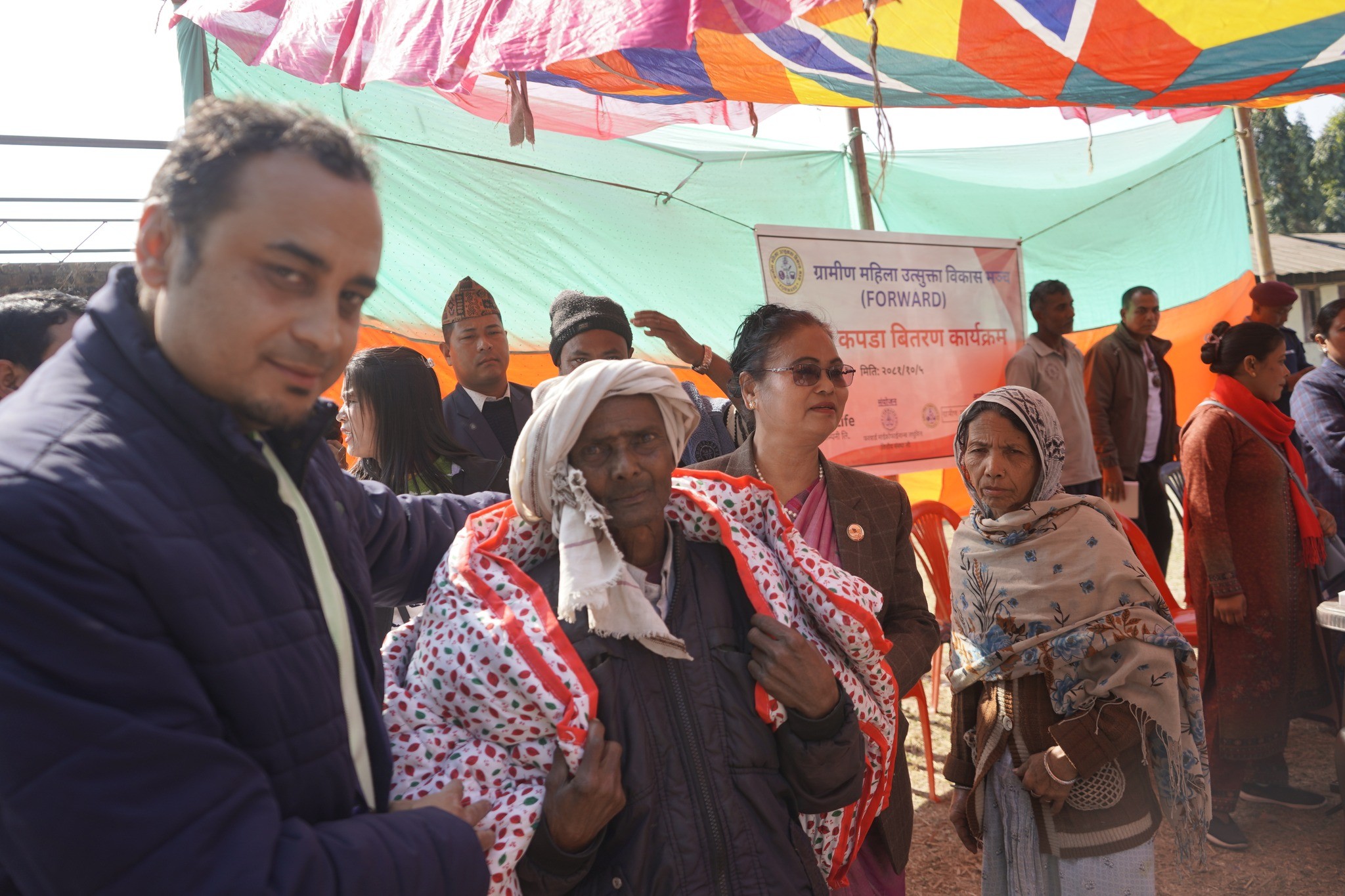 पछिल्लो केही दिन देखि तराईमा चलेको शीत लहरसँगै चिसो अत्यधिक बढेपछि मेटलाइफ इन्स्योरेन्सको सहयोगमा ग्रामीण महिला विकास उत्सुकता मञ्च (फरवार्ड) ले न्यानो कपडा वितरण गरेको हो ।