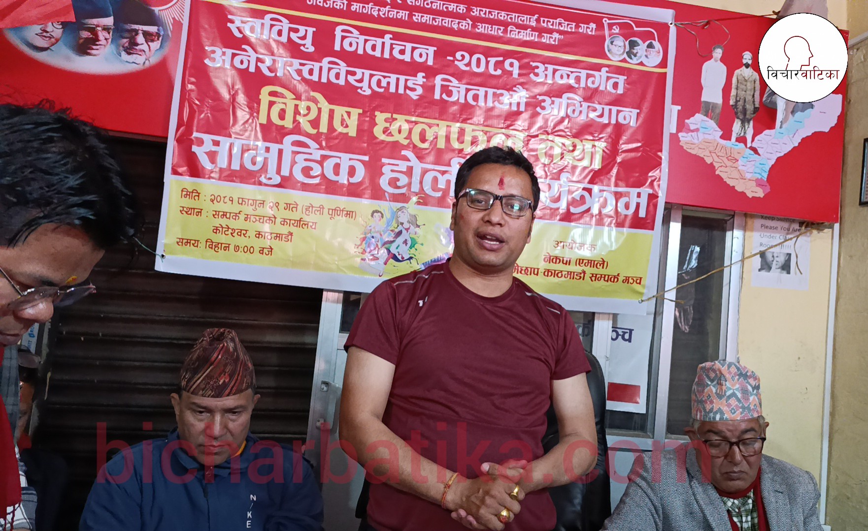 फागुन २९ काठमाडौं , नेकपा ( एमाले) रामेछाप - काठमाडौं सम्पर्क मञ्च द्वारा आयाेजीत स्ववियु निर्वाचन लक्षित विशेष छलफल तथा सामुहिक हाेली कार्यक्रम सम्पन्न भएकाे छ ।