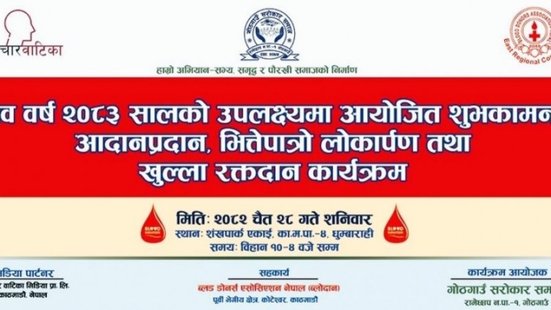 गाेठगाउँ सराेकार समाज द्वारा नयाँ वर्षकाे शुभकामना आदानप्रदान तथा भित्तेपात्राे लाेकार्पण तथा रक्तदान कार्यक्रम सम्पन्न ।