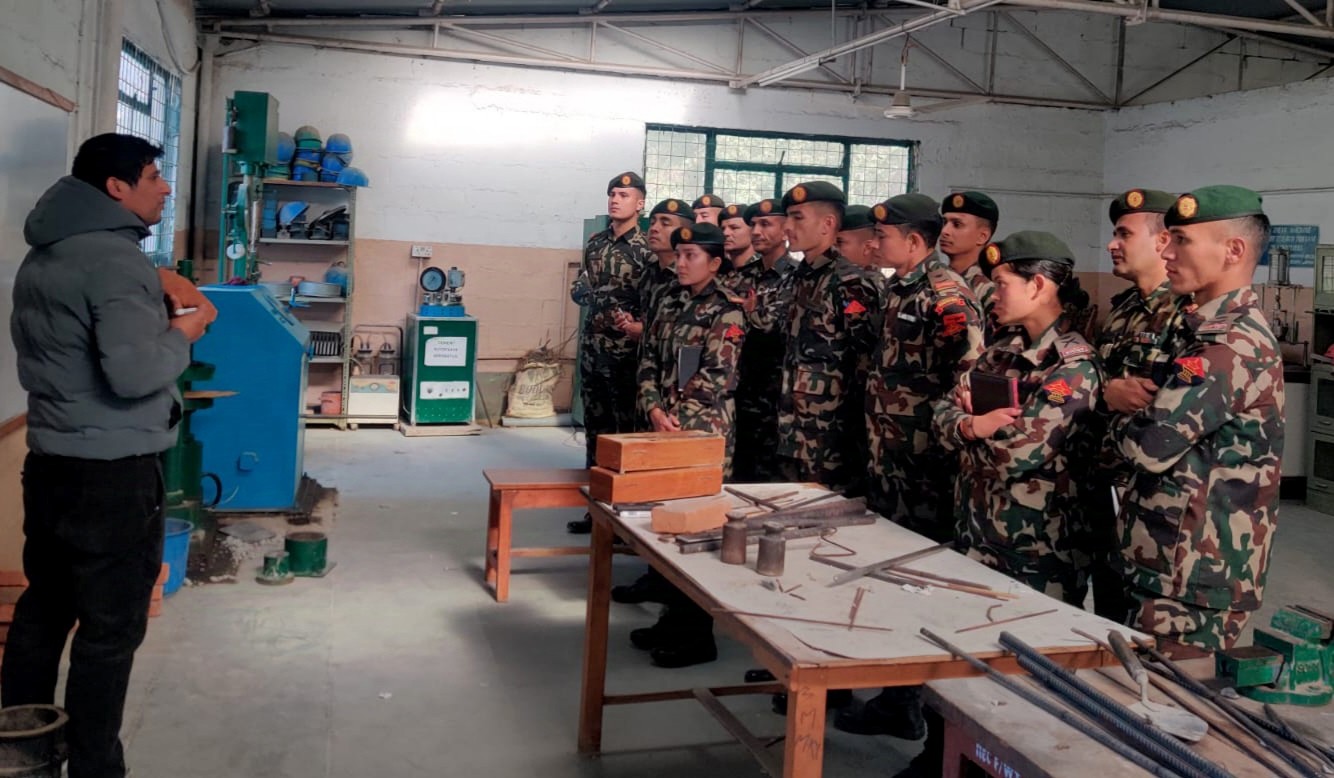 पुस ३ काठमाडौं, नेपाली सेना, इन्जिनियर तालिम शिक्षालय गौचरण व्यारेकका इन्जिनियर युवक अधिकृतहरुले नेपाल इन्जिनियरिङ कलेजको स्थलगत भ्रमण गरेका छन् । मंगलबार गौचरण ब्यारेकका १६ जना इन्जिनियर अधिकृतहरुले कलेजको स्थलगत अध्ययन अवलोकन गरेका हुन् ।