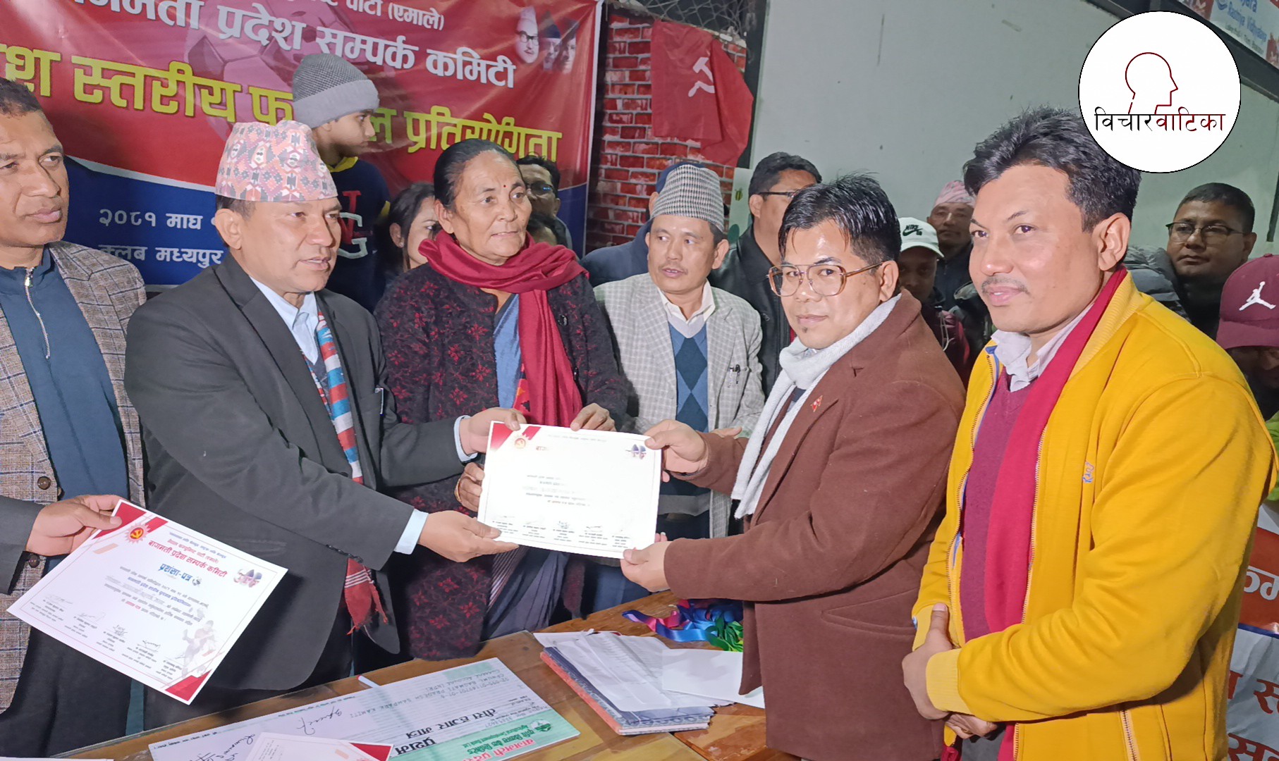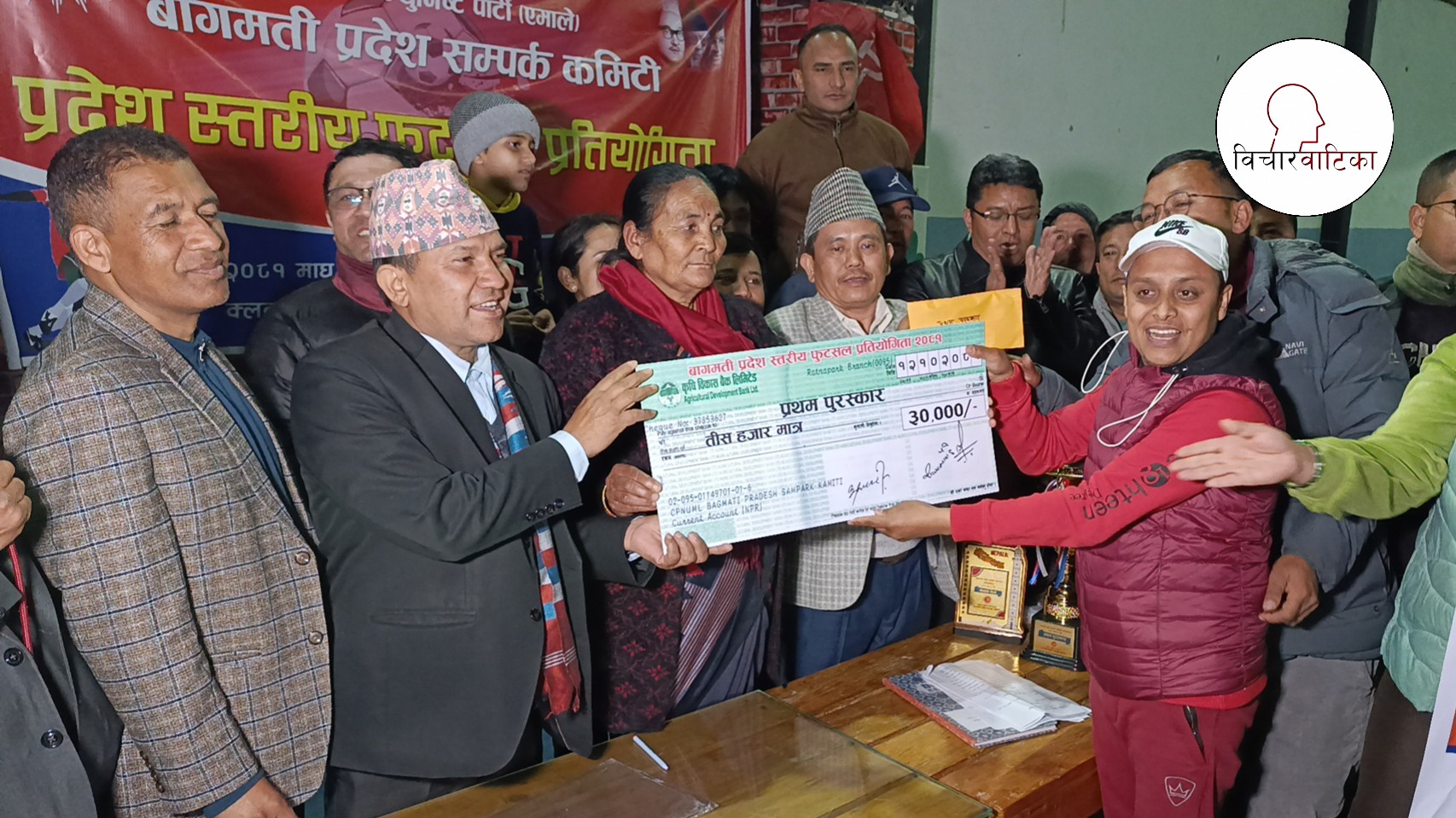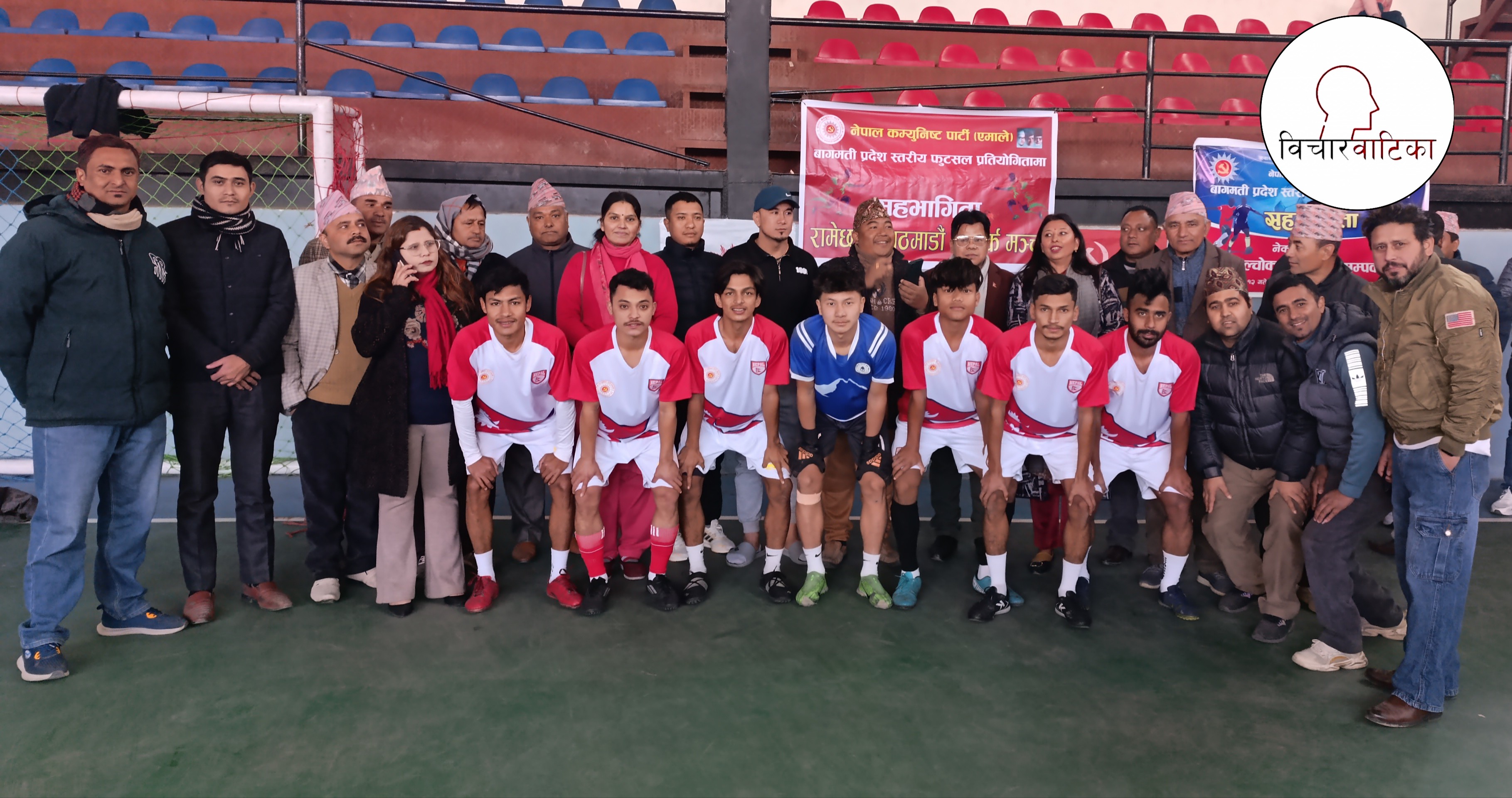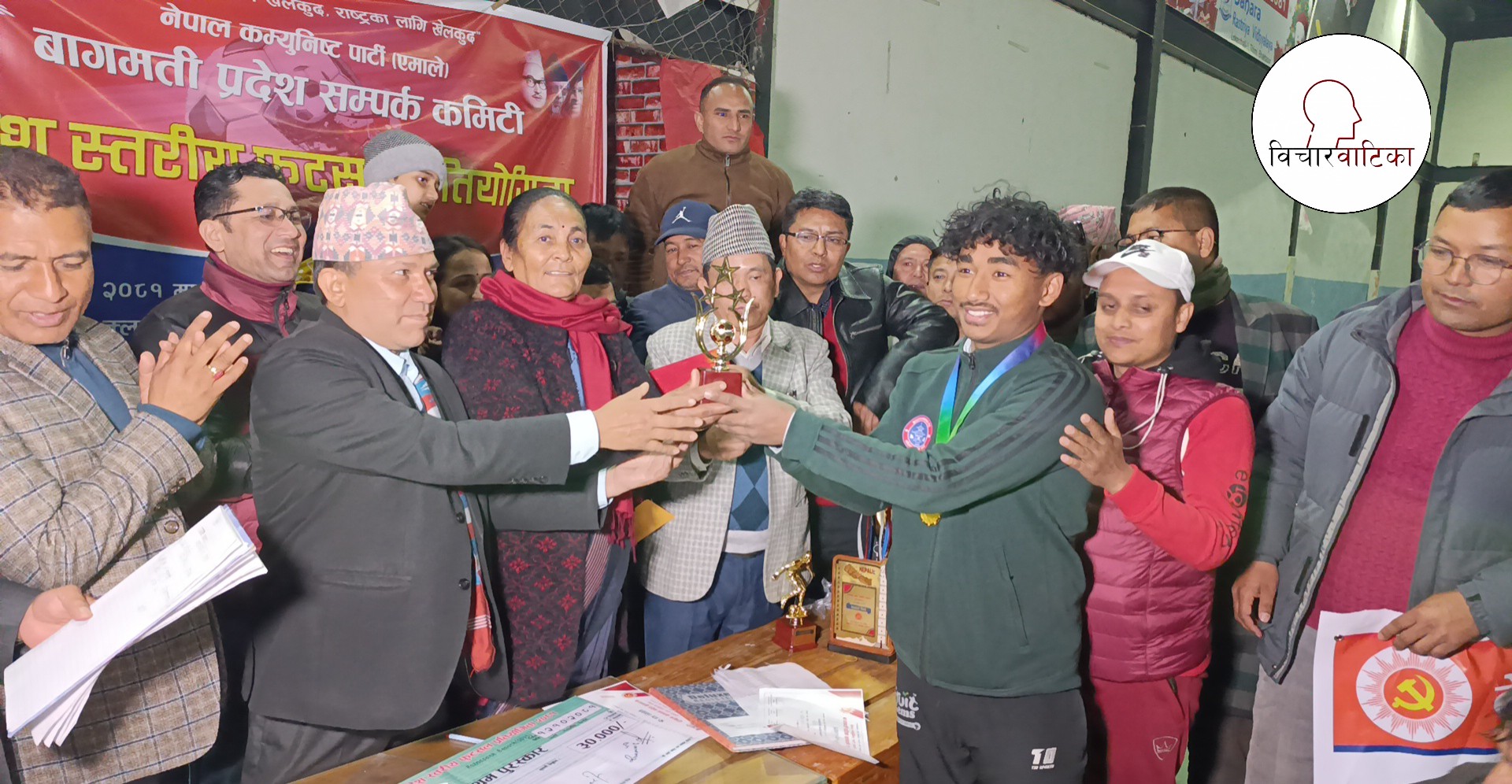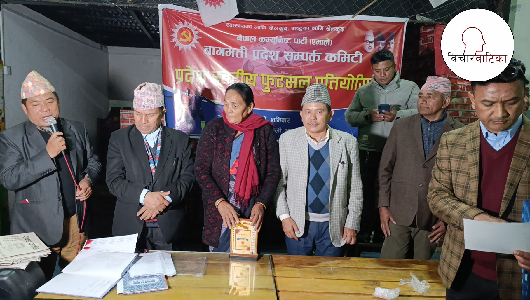 नेकपा ( एमाले) बागमती प्रदेश कमिटीका अध्यक्ष अशाेक कुमार ठकुरीको अध्यक्षता तथा नेकपा (एमाले ) का स्थायी कमिटी सदस्य तथा केन्द्रीय सम्पर्क समन्वय कमिटी इन्चार्ज लालबाबु पण्डितको प्रमुख आतिथ्यता बागमती प्रदेश कमिटी खेलकुद विभागको व्यवस्थापनमा आयाेजना गरिएकाे प्रदेश स्तरीय फुटसल प्रतियोगितामा दाेलखा - काठमाडौं सम्पर्क मञ्चको खेलाडी महेन्द्र कार्की उत्कृष्ट खेलाडी , दाेलखा - काठमाडौं सम्पर्क मञ्चका खेलाडी पदम तामाङ उत्कृष्ट गाेलक्रिपर र सिन्धुपाल्चोक - काठमाडौं सम्पर्क मञ्चका खेलाडी रमित तामाङले दस गाेल गर्दै सबै भन्दा धेरै गाेल गर्ने उत्कृष्ट खेलाडी आयाेजकले घाेषणा गरेकाे थियाे